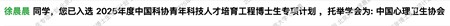 喜报 | 北京大学医学人文学院医学心理学系博士生徐晨晨入选2025年中国科协青年科技人才培育工程博士生专项计划